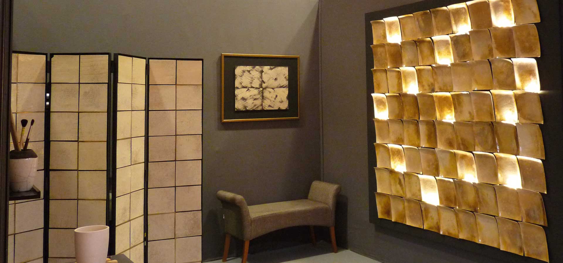 Painted wood structure covered by 72 "flakes" some of which are backlit by LED lighting